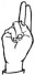 На ћирилици написано АЛЕКСАНДРА ЛУДОШКИ састоји се из 17 слова [?]. Исписано ћириличном једноручном азбуком за глувонеме:
